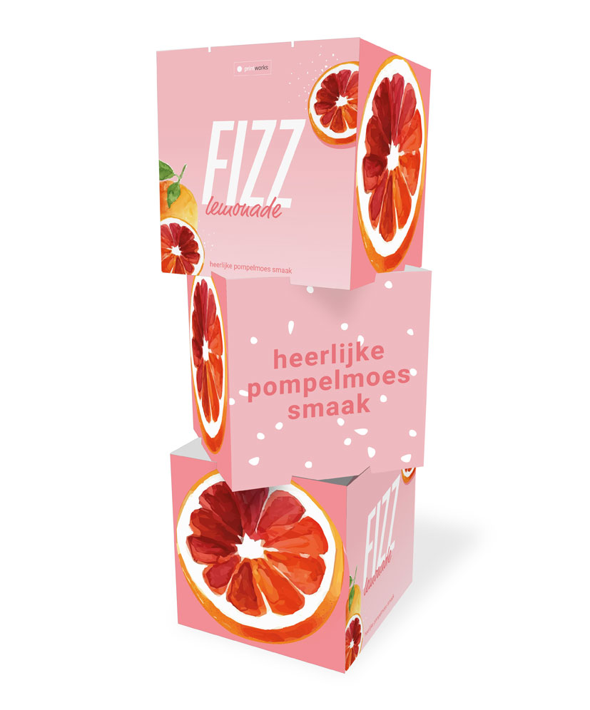 onze kubustotems bestaan uit 3 of 4 niveau's en worden vaak gebruikt als wegwijzers op beurzen en events. zichtbaar vanuit elke hoek, wordt deze recto full-color geprinte totem jouw ideale eyecatcher.