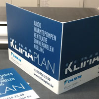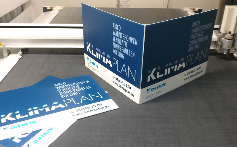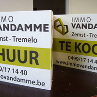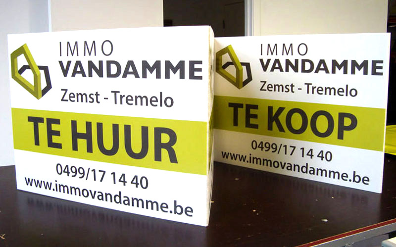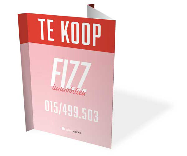 een v-bord wordt full color op hoogwaardige en lichte kanaalplaat van 4mm dik geprint. de lichte v-borden komen in 4 verschillende formaten en worden meestal aan ramen bevestigd. ze hebben een plooilijn en dubbelzijdige kleefstroken voor makkelijke plaatsing. maar ook een houten constructie is mogelijk om het bord in de voortuin of op percelen te plaatsen.